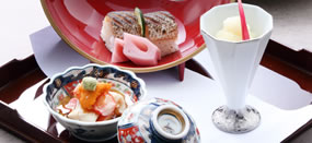 旬の野菜、魚介類を中心に、それぞれの素材の 持ち味を活かして仕上げる日本料理の数々。 御膳料理から贅を集めた会席料理まで、 ご用途に合わせてお選びいただけます。 17:00~22:00(ラストオーダー/21:00) *平日のみ *料金には税金が含まれております。 |