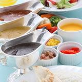 自然光が明るいラウンジで、平日のランチタイムはバラエティ豊かなカレーバイキングが楽しめます。
