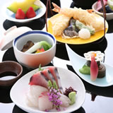 旬の食材をあしらった本格的な日本料理をゆっくりお楽しみいただけます。 京料理の粋をあつめた会席も、ご予約にて承ります。